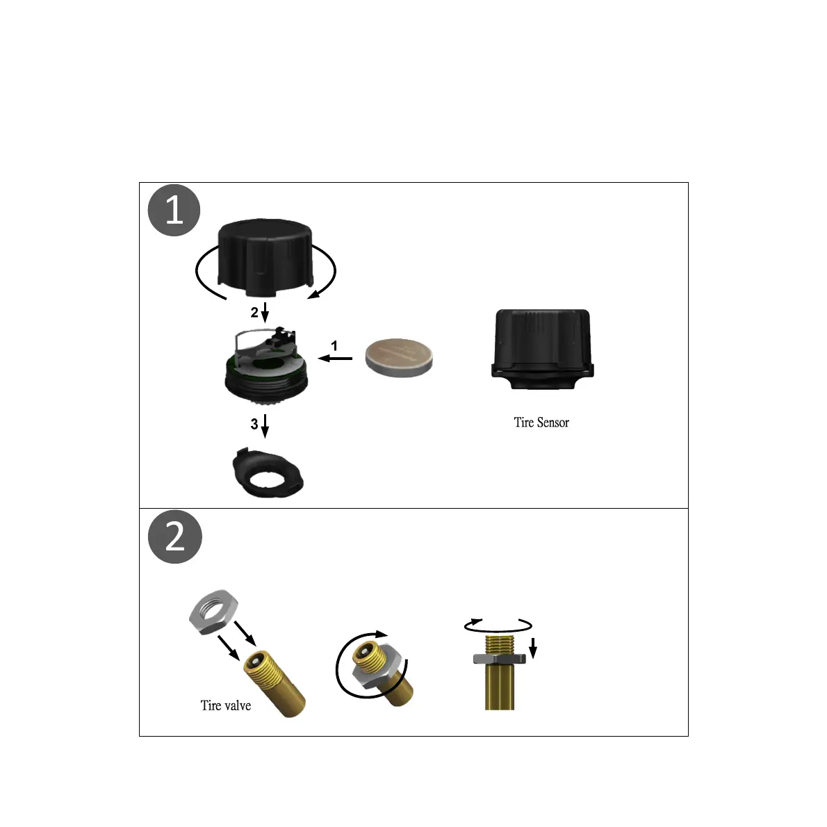 1.Battery(CR1632) 2.Tire Sensor 3.Anti-theft part 4.Lock-Nut 5. Spanner