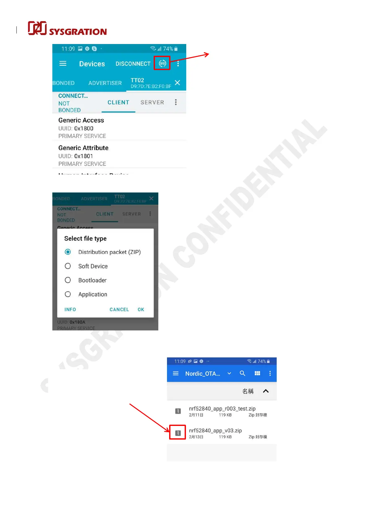 1.8. Select the updated OTA file, click the icon in red box as below if confirm the file is what you