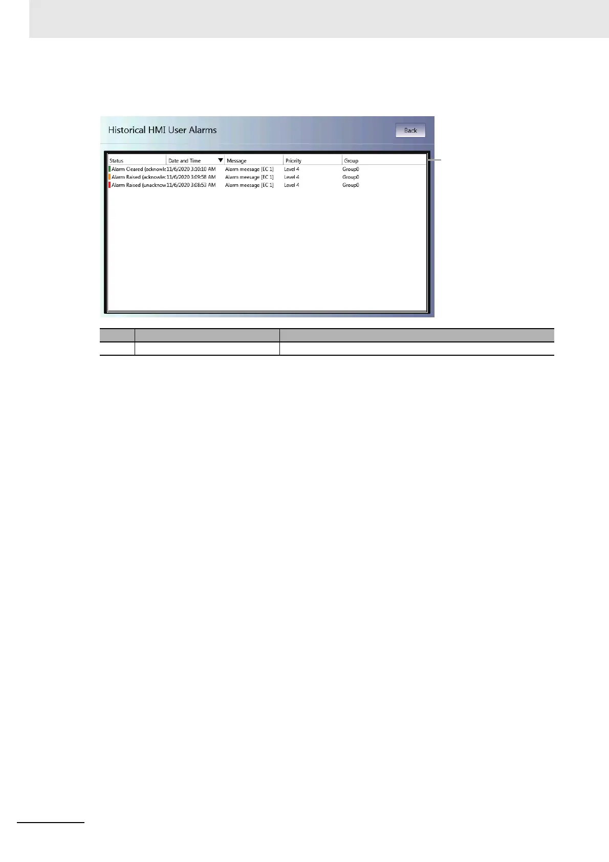 (a) Historical HMI User Alarm Displays a log of the user alarms.
