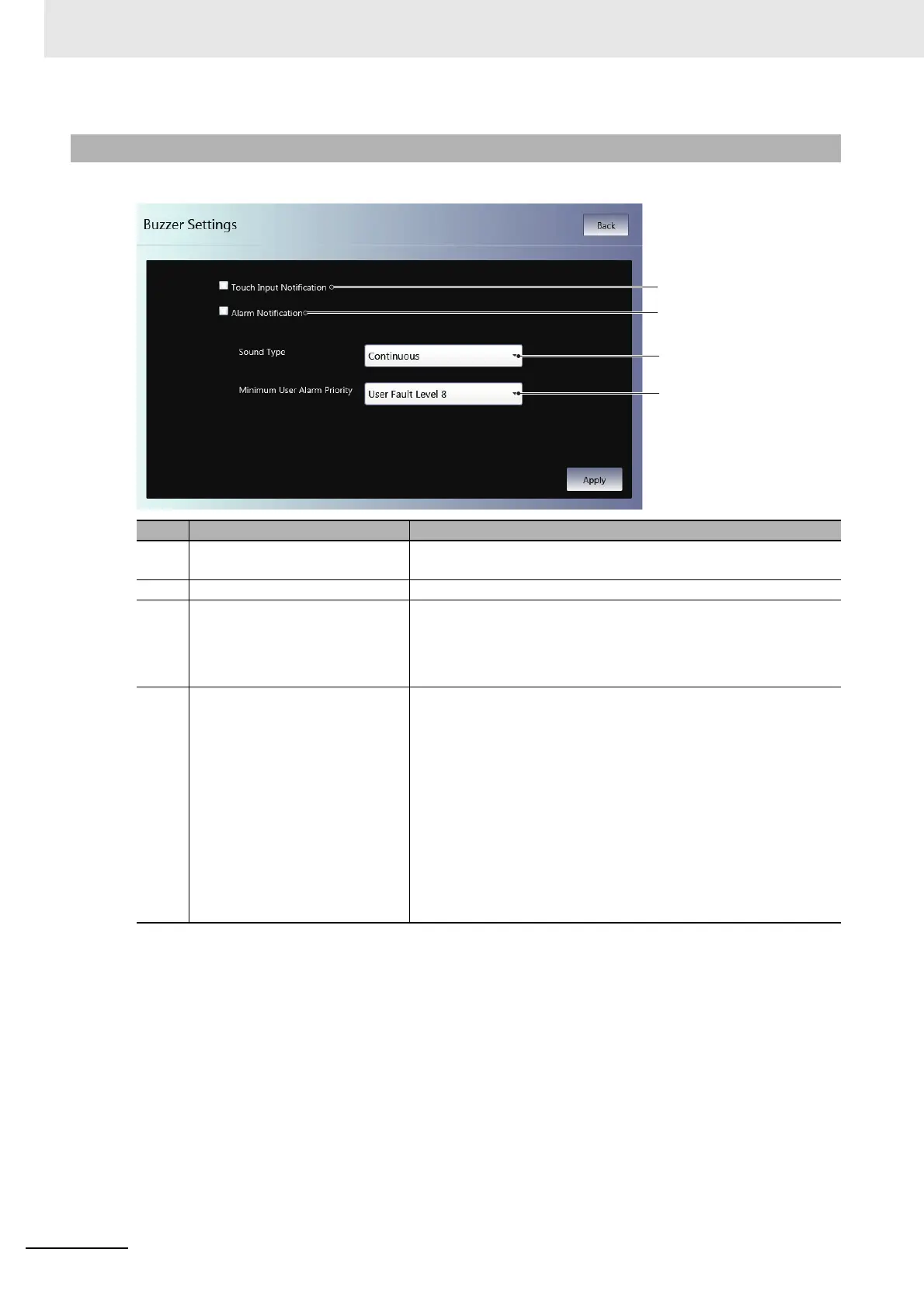 (d) Minimum User Alarm Priority Select the user fault level that sounds the buzzer from among the