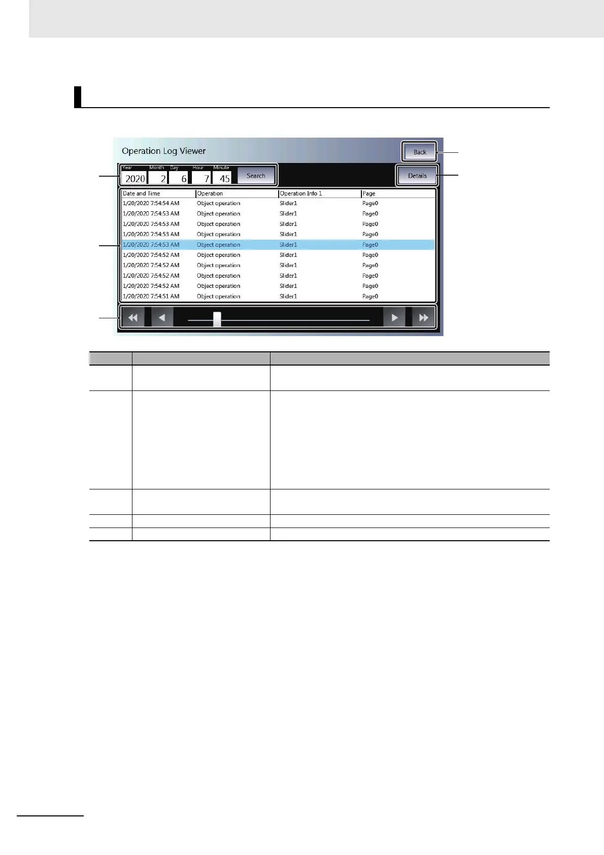 3 Change Page Changes the page of the Log List. The left end is the newest page