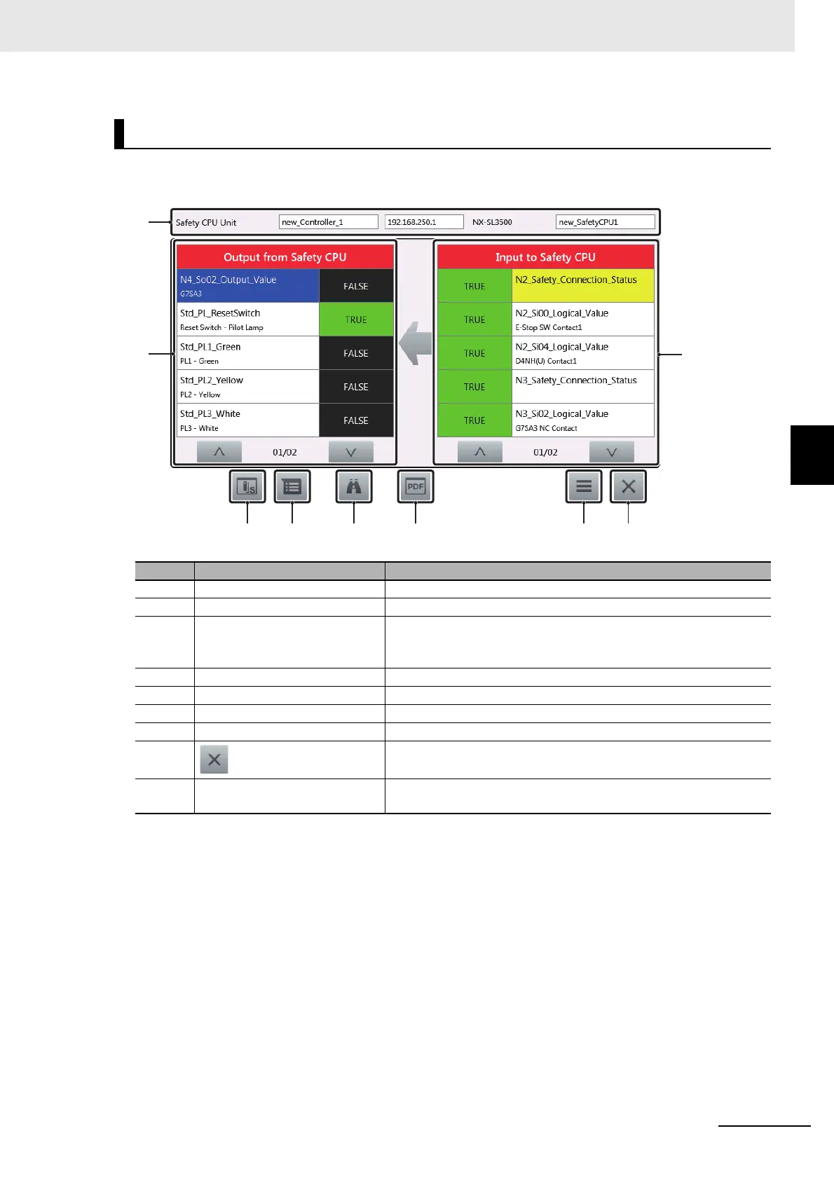 1 Applicable equipment Displays the safety CPU unit currently being monitored.