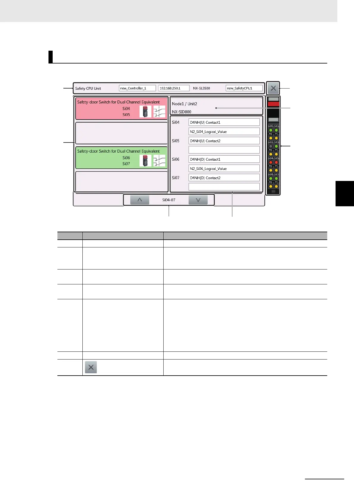 6 Unit Information Displays information on the displayed safety input unit.