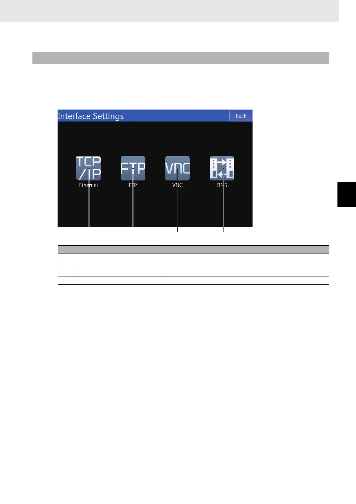 From the Interface Settings Screen, you can tap any of the icons for settings to display the individual