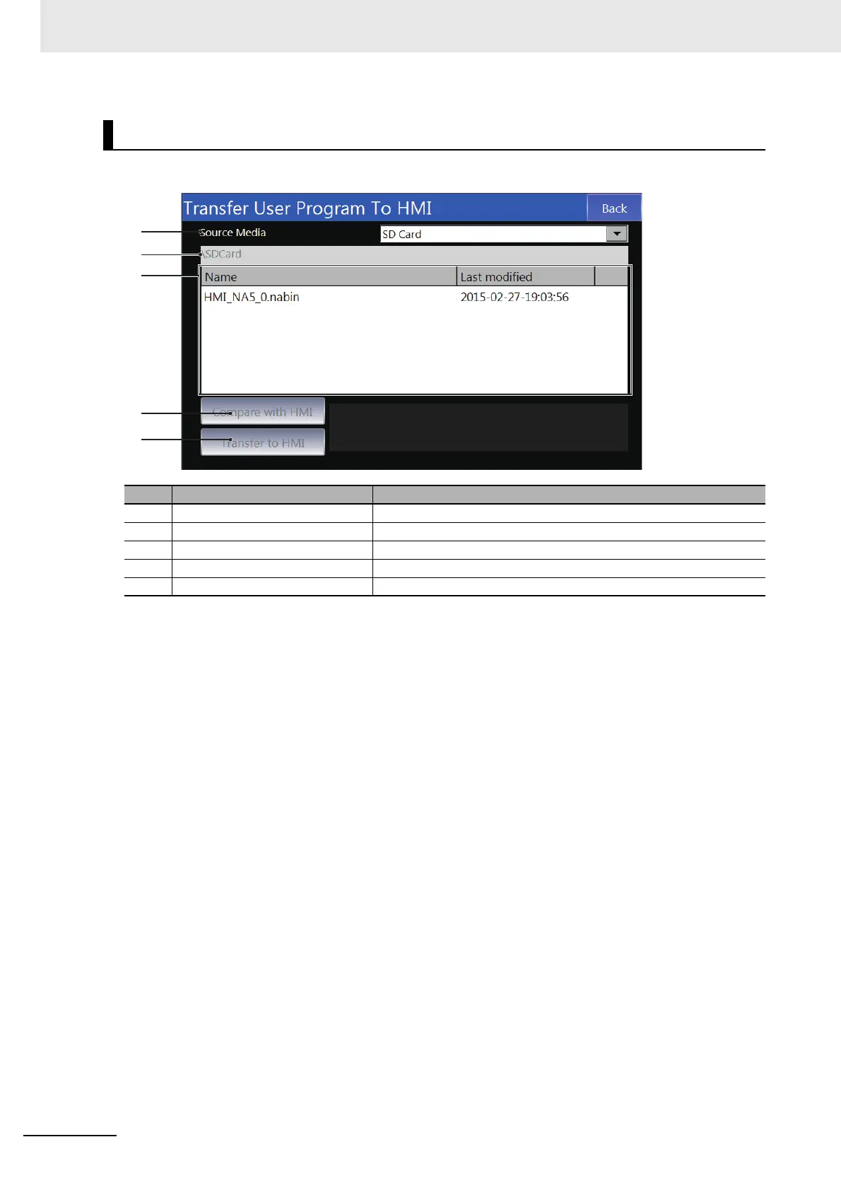 (e) Transfer to HMI Downloads the selected project to the HMI.
