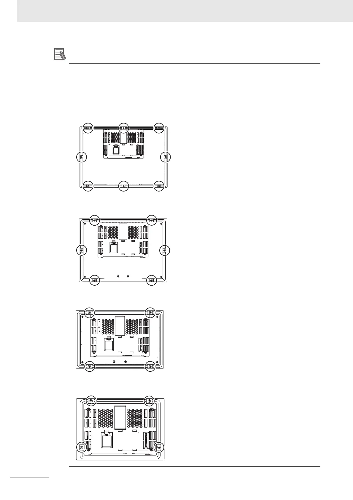 Secure the NA Unit with mounting brackets in the eight locations shown below.