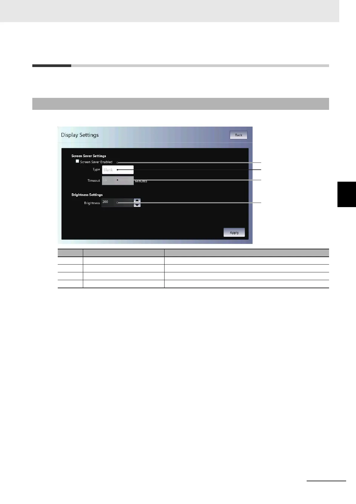 (c) Timeout Sets the time until the screen saver is started in minutes.