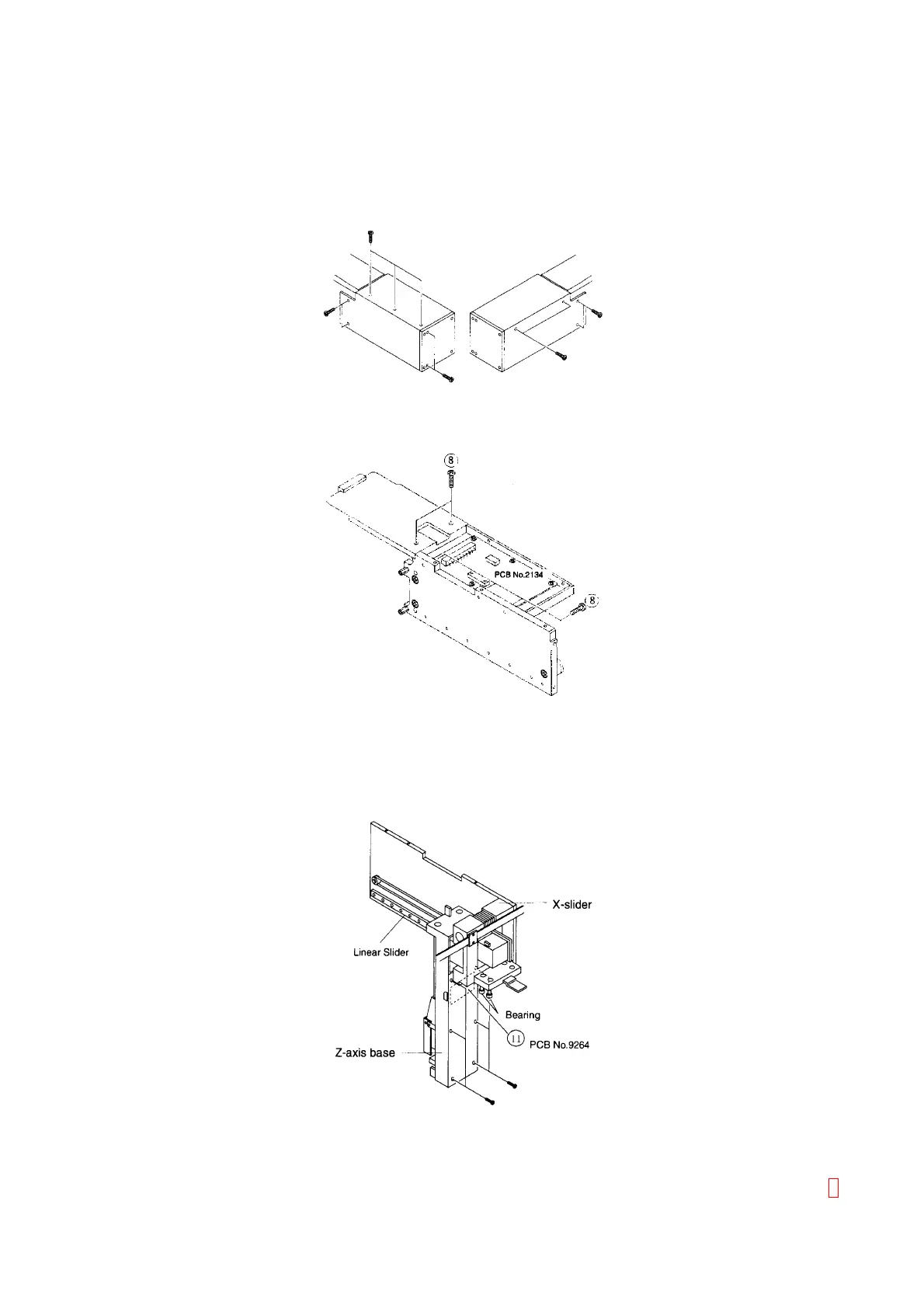 (11) After removing six screws fixing the resin cover at the back side of the Z-axis base, you can access PCB