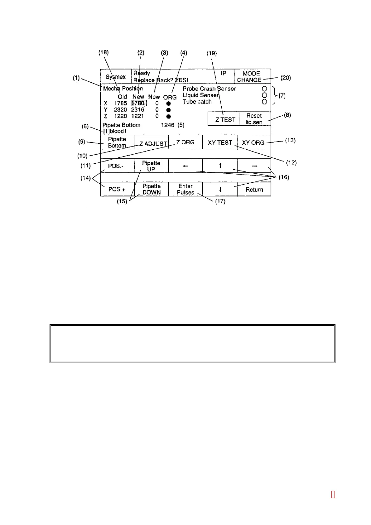 (11) [Z ORG] Key: Return the pipette or the catcher to Z home position.