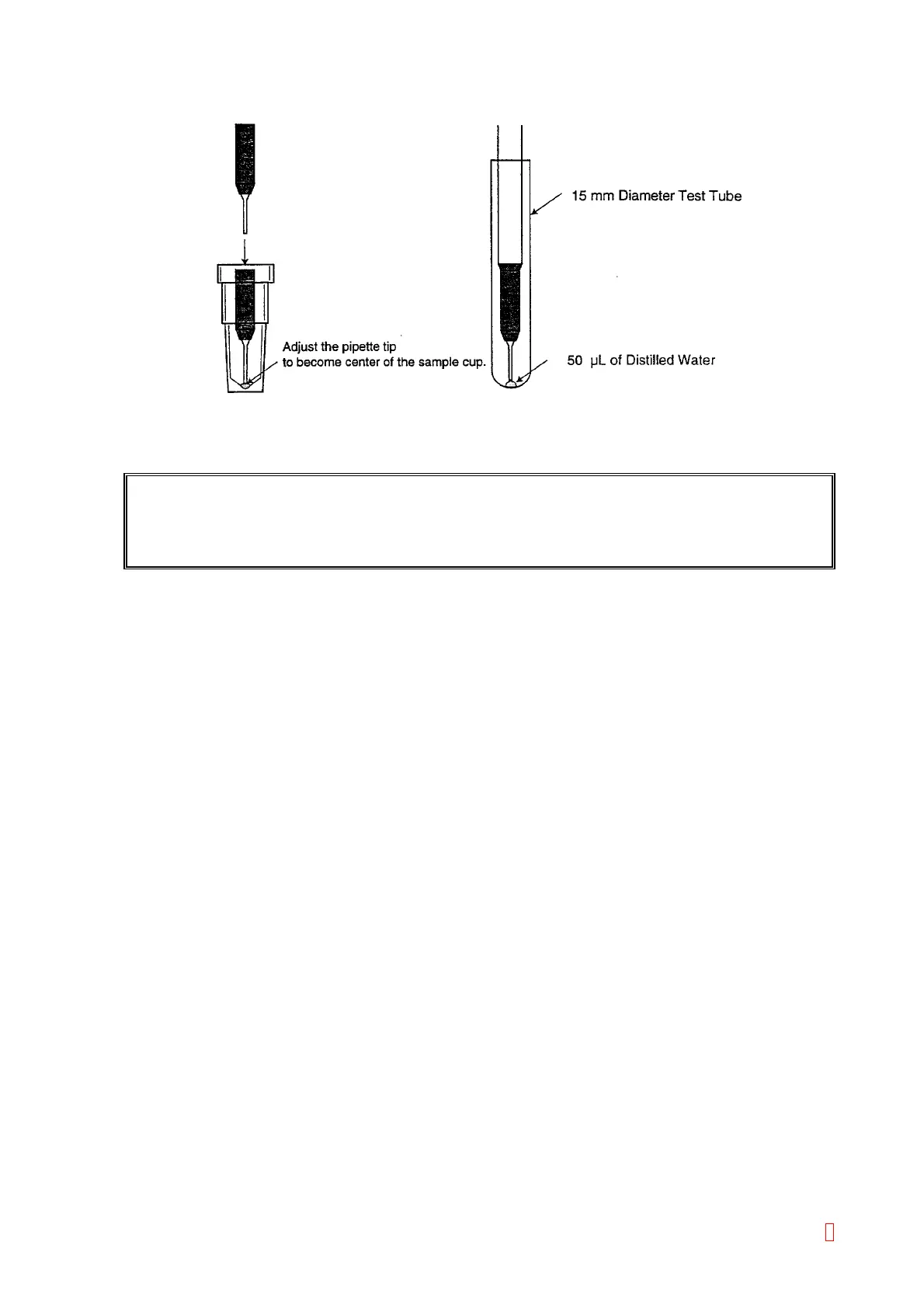 5) Press [Z TEST] key to descent the pipette. The pipette detects the 50 µL of distilled water and stops.