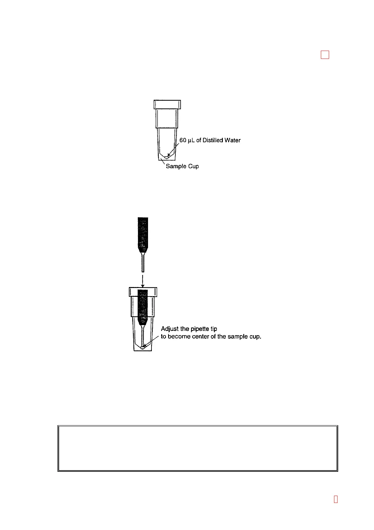 1) Set the sample cup holder to the reagent rack No. 1. Place 60 µL of distilled water into the 4 mL