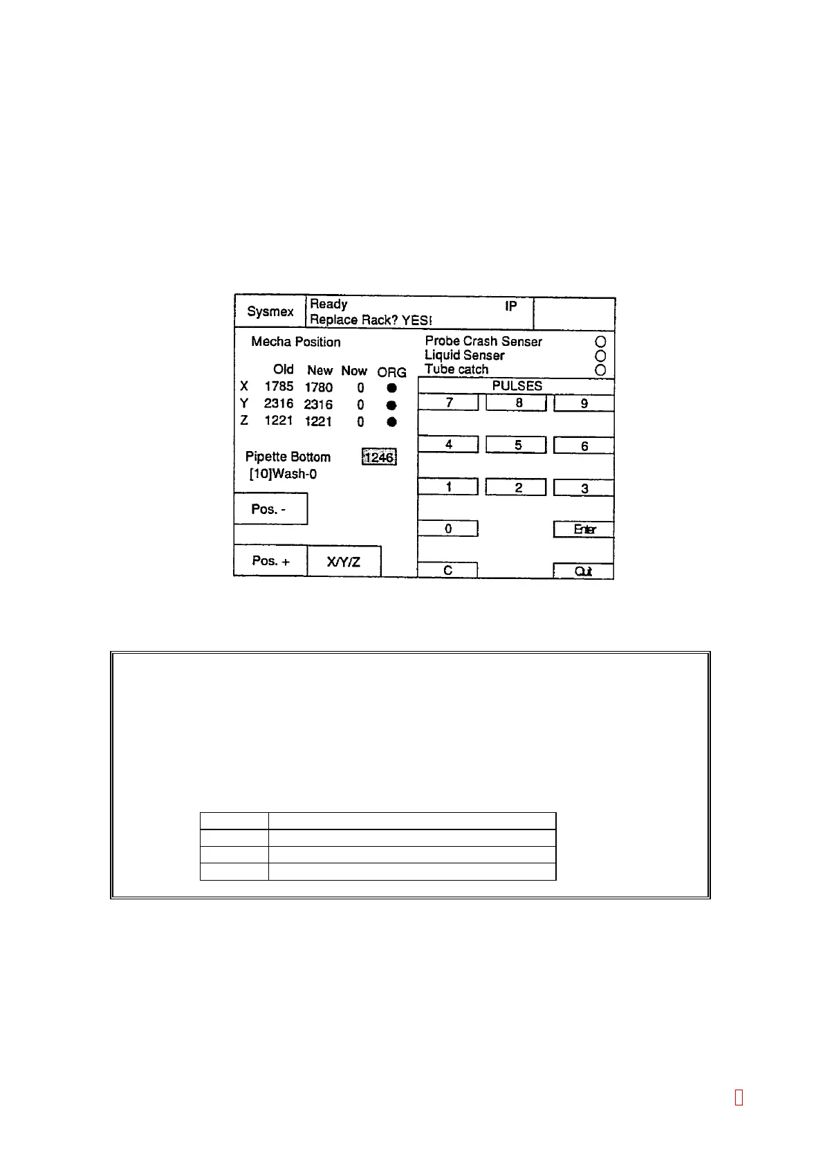 2) Move the pipette to the adjustment position by using [XY TEST] key.