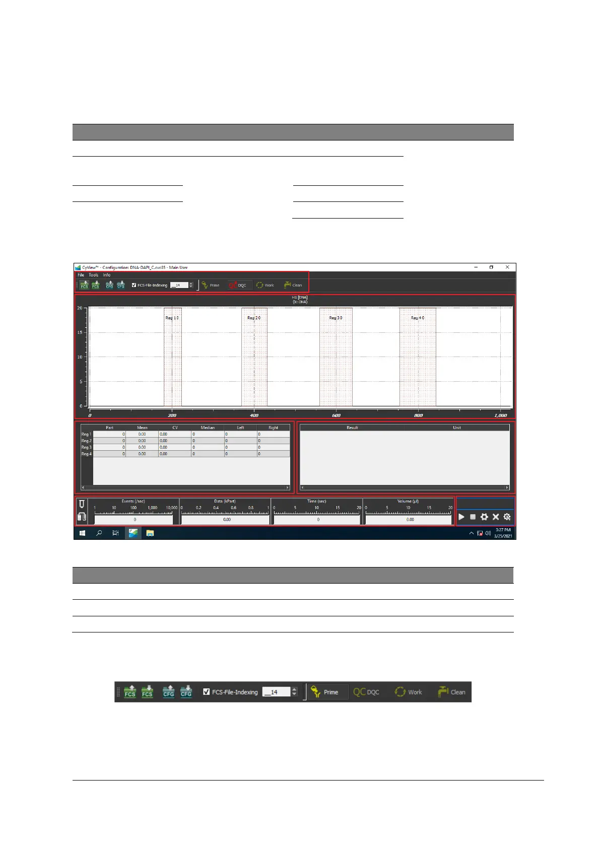 SYSMEX CyFlow Ploidy Analyser - Main Window; Controls; Figure 13: Main Window (DNA-Dapi_C.cvc85 Configuration Active); Figure 14: File Operations