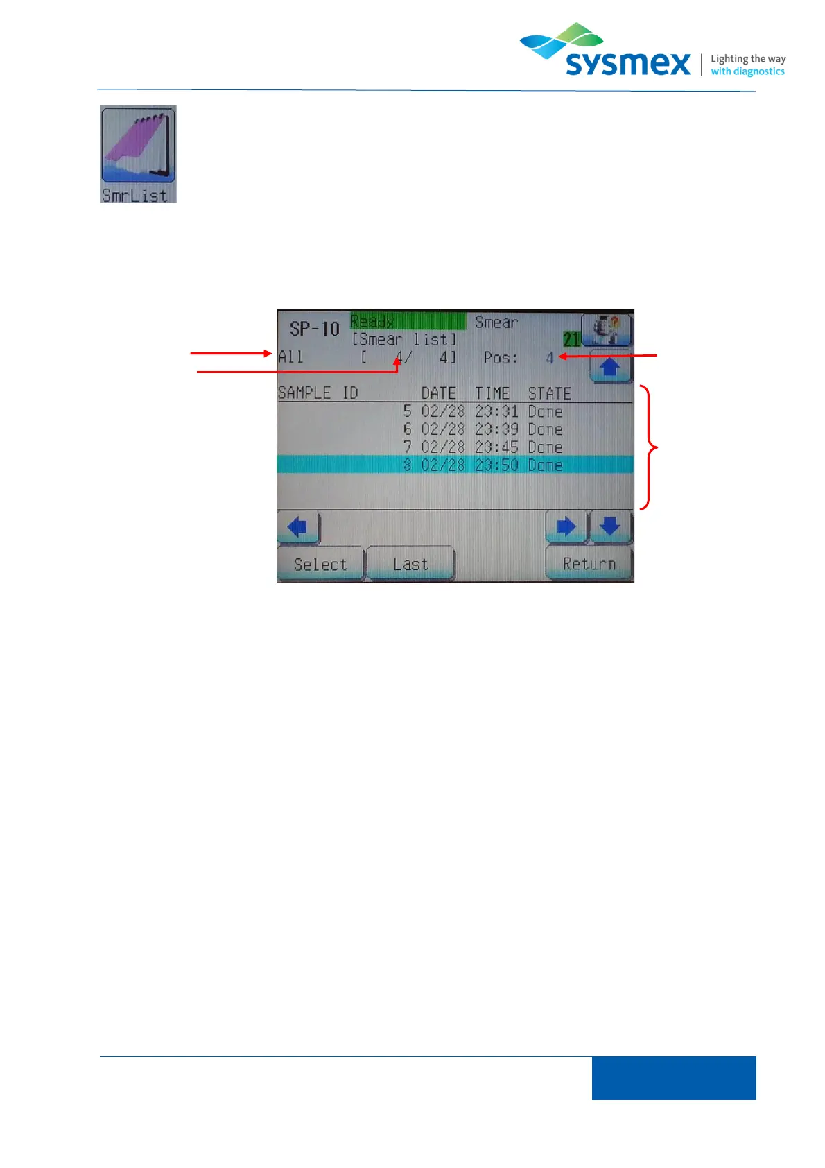 The smear list contains a database of the last 1000 slides to have been processed and are currently