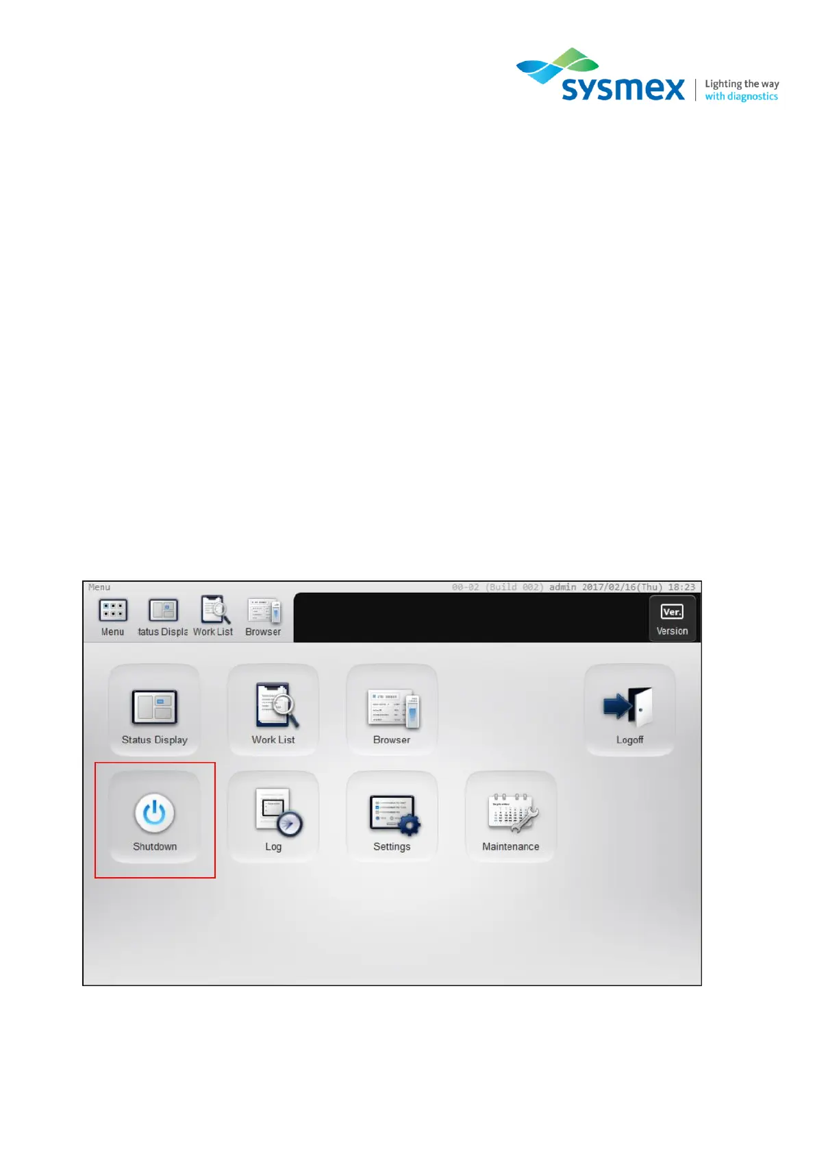 1. From the [Menu] select [Shutdown].