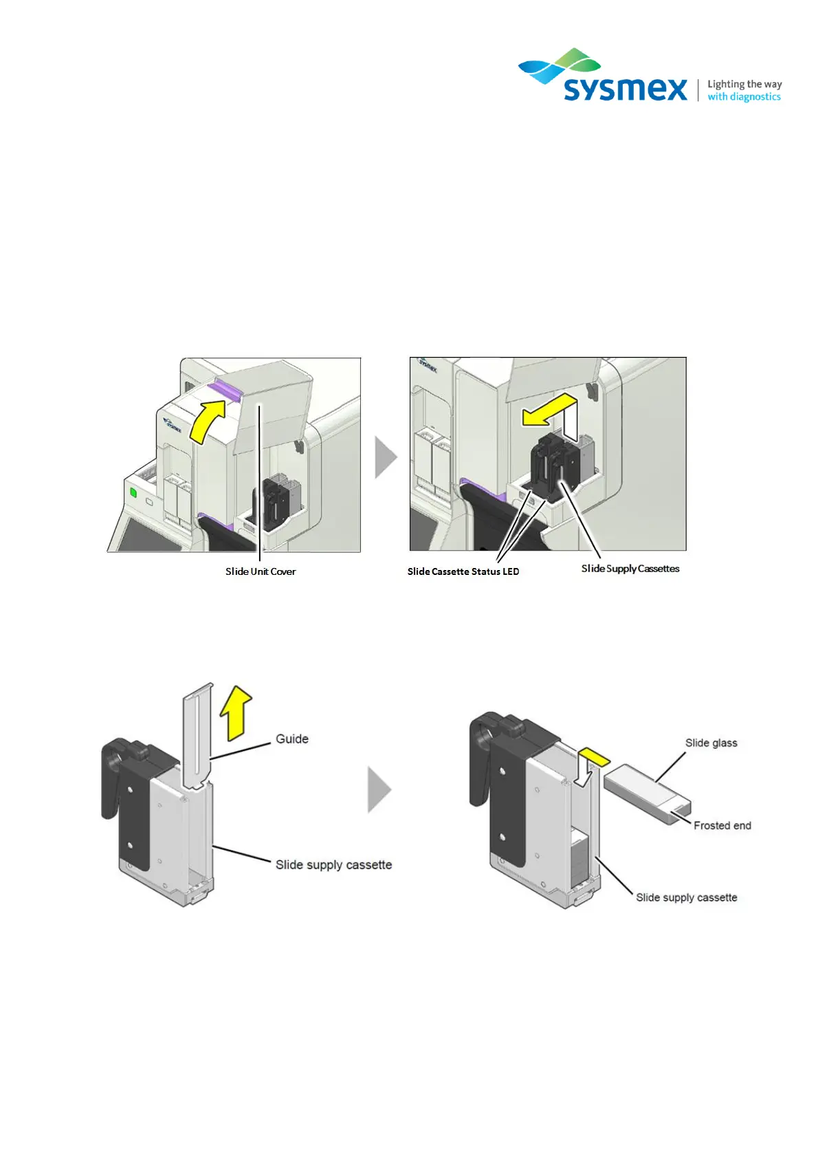 3. Replace the slide supply cassette guide, load the slide cassettes back into the slide supply unit