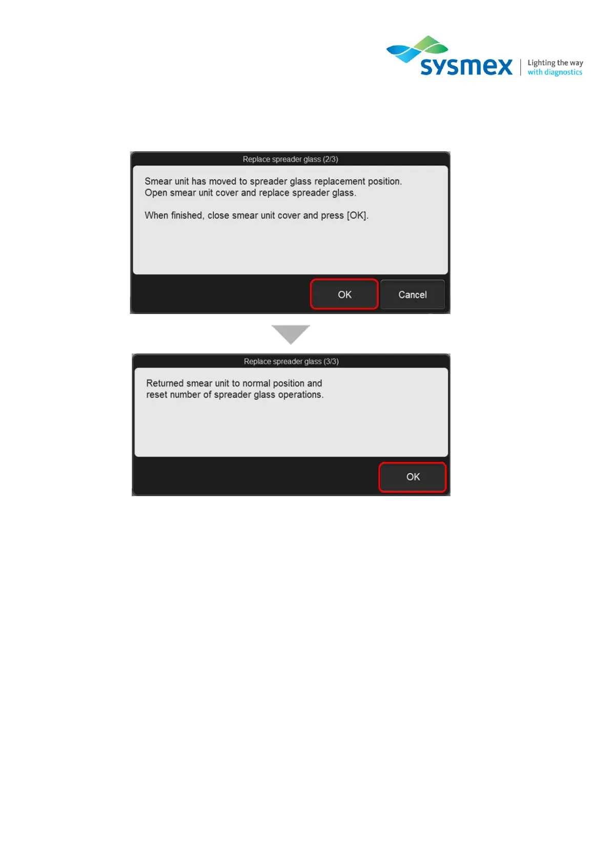 original position. On the IPU, select [OK] on the spreader glass operation count followed by [OK].