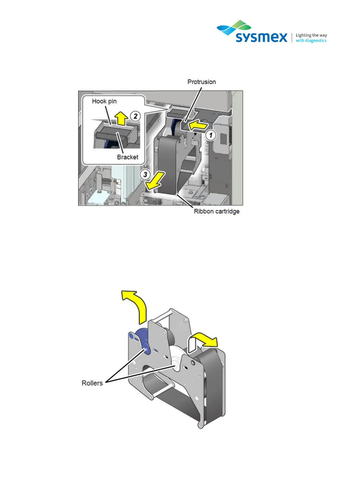 3. Remove the ink ribbon cartridge from the bracket as shown in the diagram below: