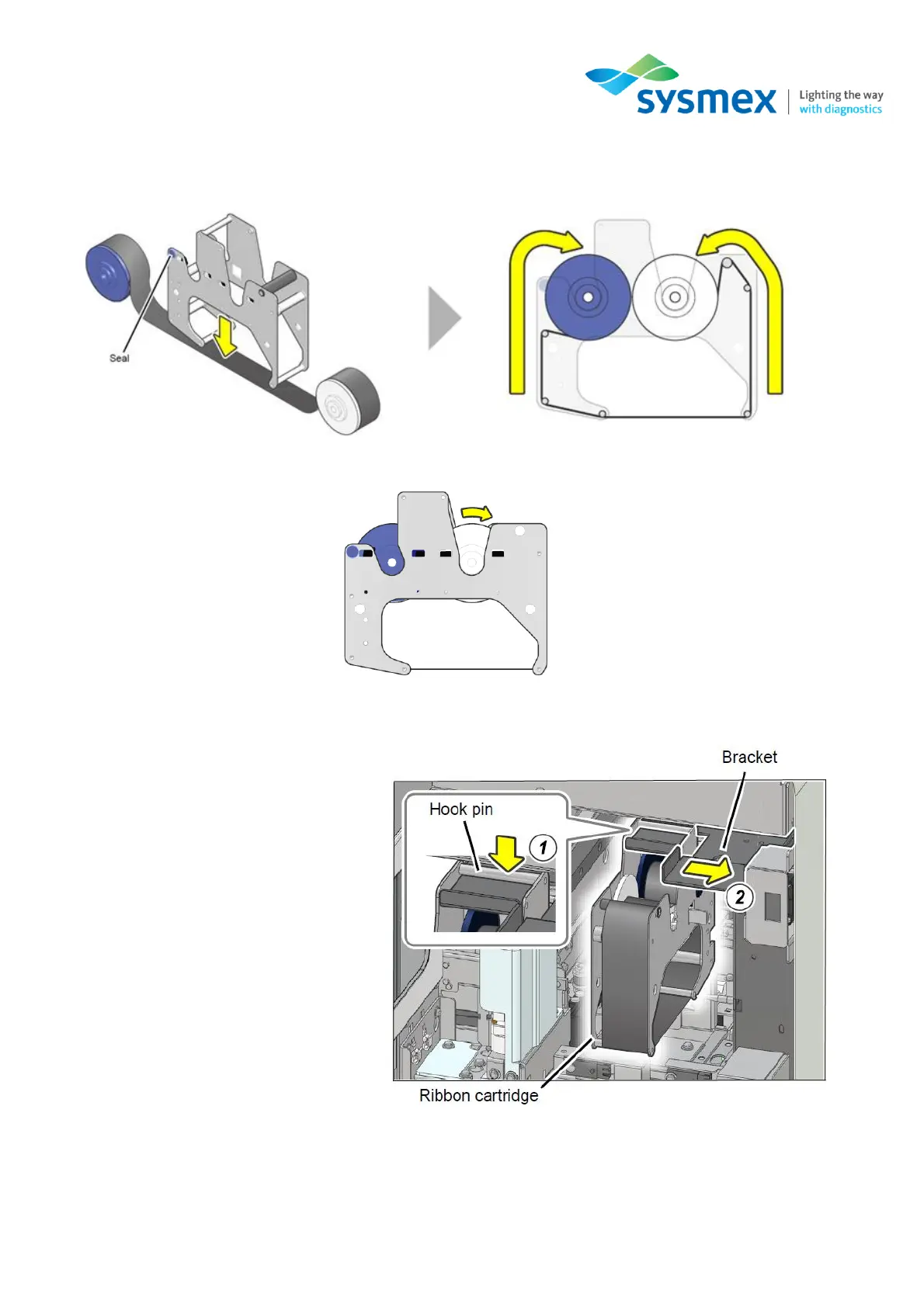 8. Once the ink ribbon has been replaced, restore all affected components back to their original