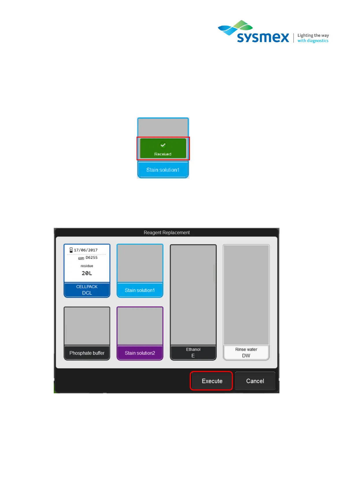 8. Remove the old container and replace it with the new reagent. Select [Execute] to prime the new