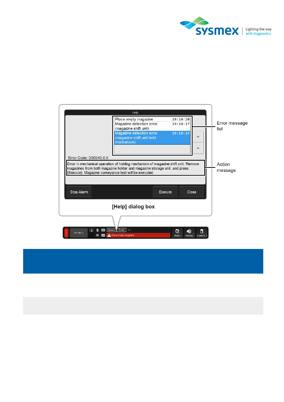When an error occurs an audible alarm will be heard and the [Help] dialog box will be displayed on the