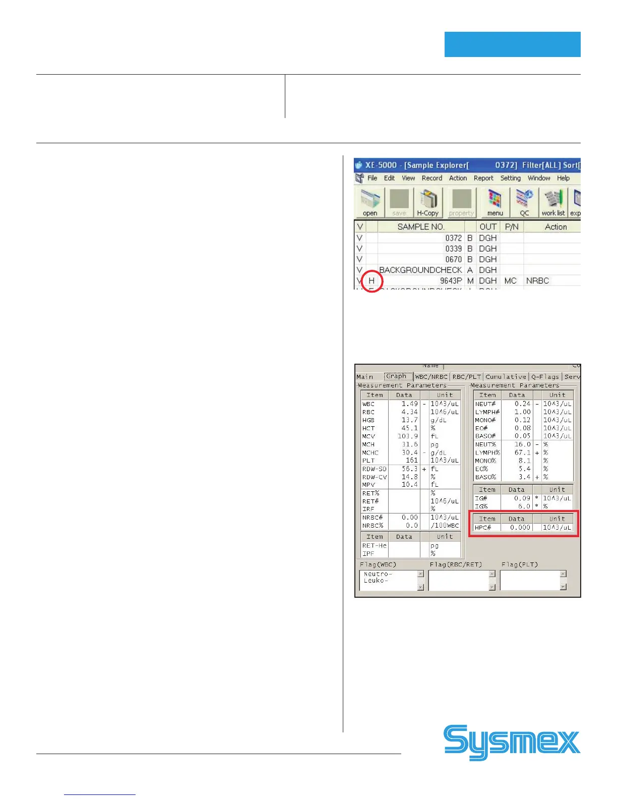 Samples analyzed in HPC Mode are marked with an “H” to the left of