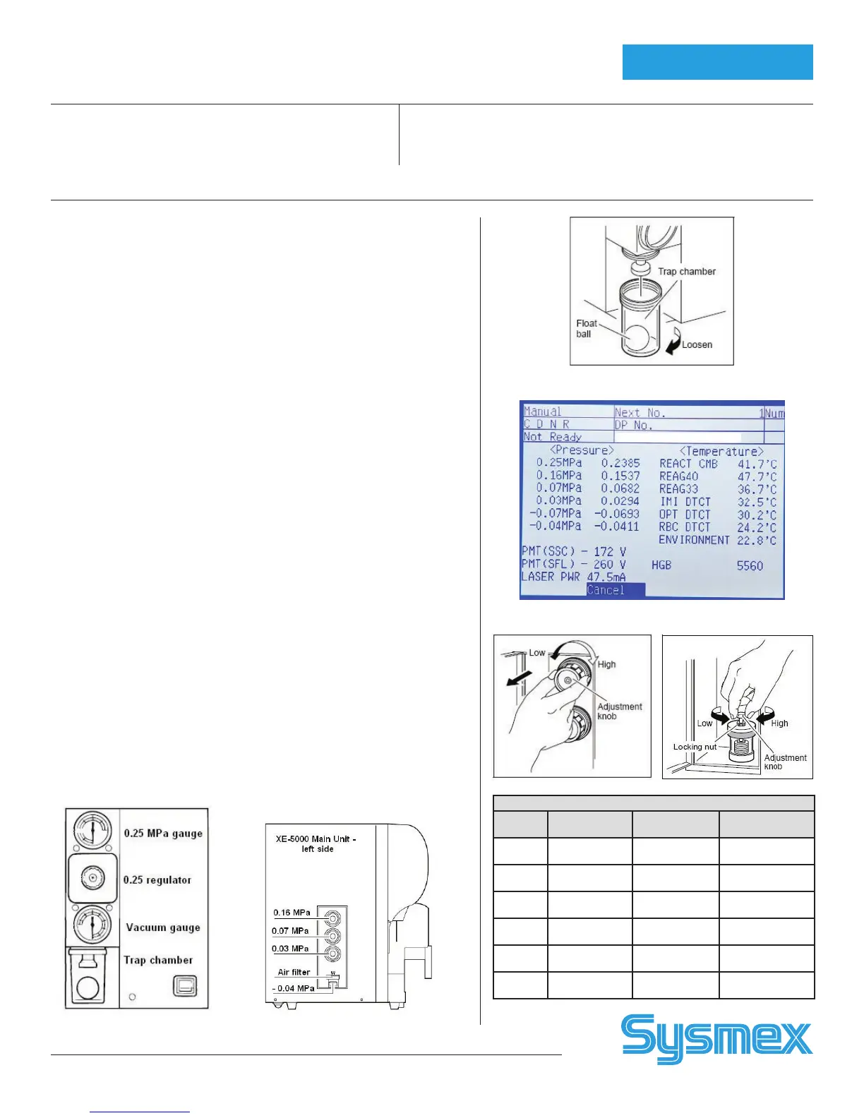 To Adjust XE Main Unit Pressure