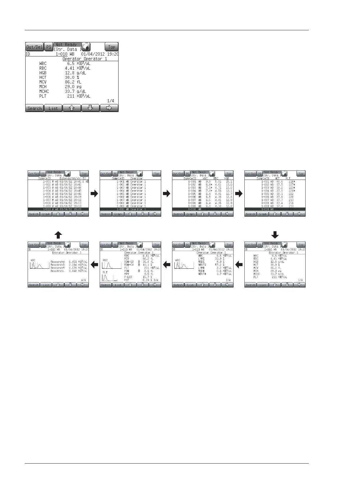 Press the [Str. Data] button on the Menu screen to display the stored data screen.