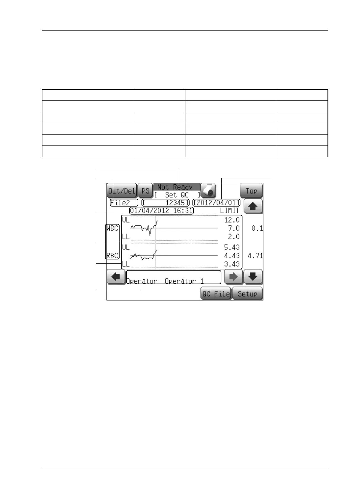 First quality control chart screen WBC, RBC Seventh quality control chart screen MXD#, NEUT#
