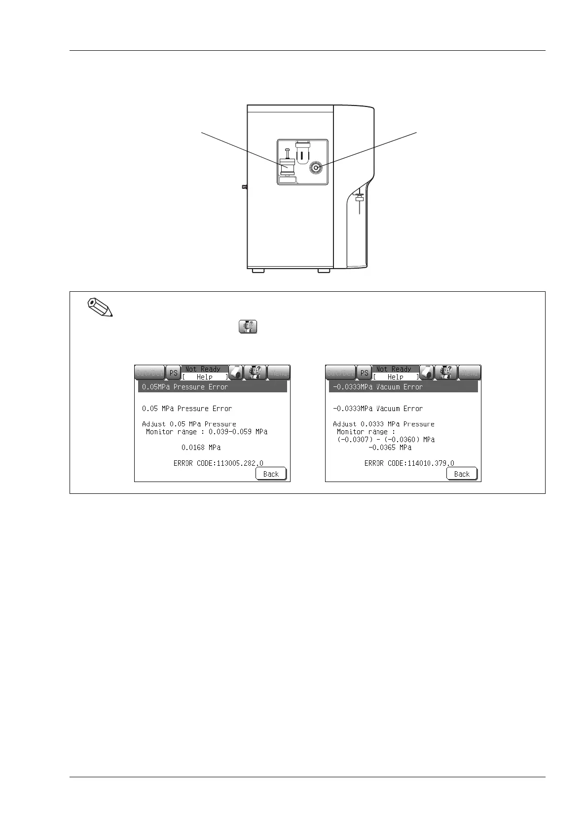 When an error has occurred, press in the error dialog to check pressure or vacuum value on the