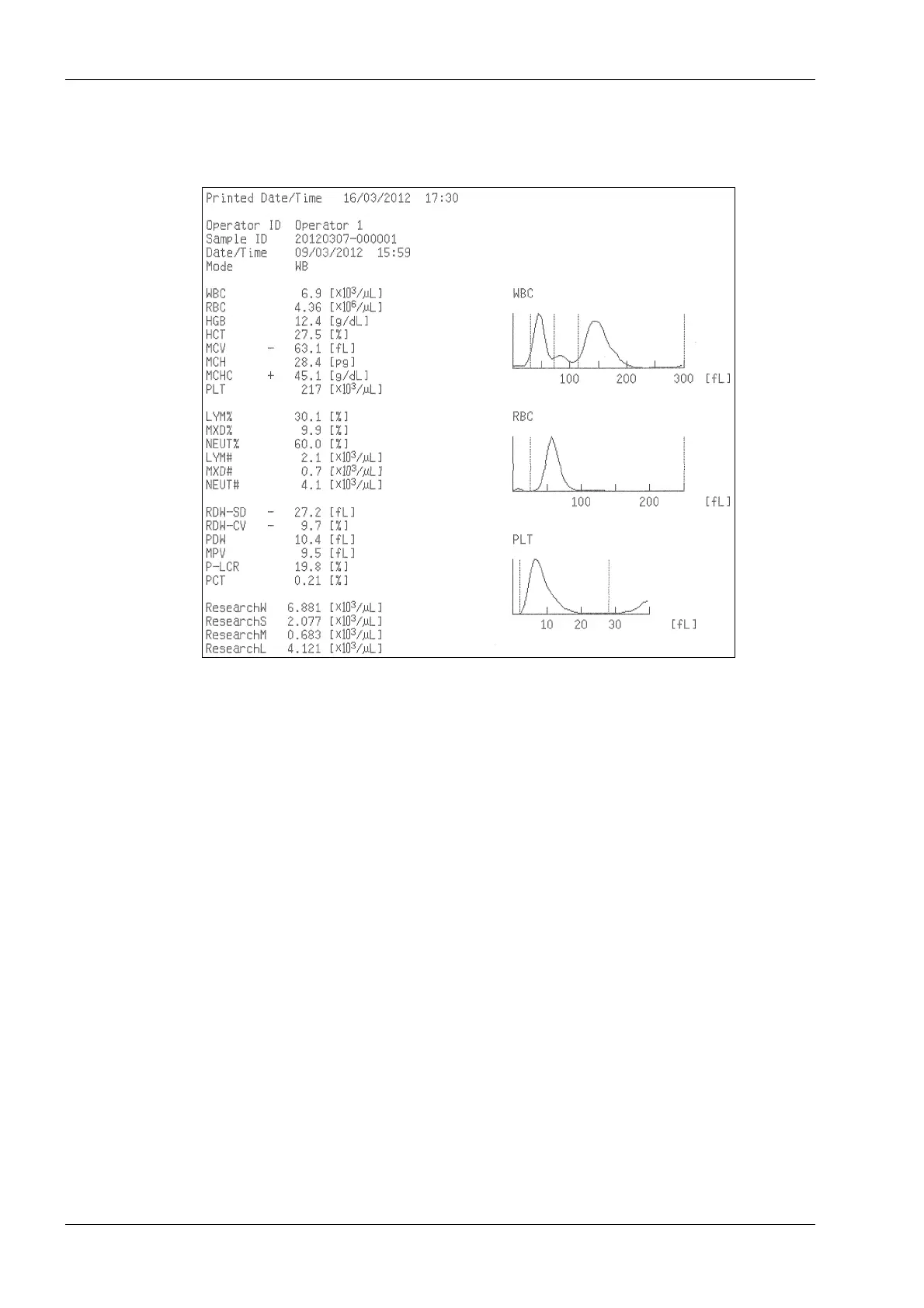 Examples of printed results on the graphic printer (GP)