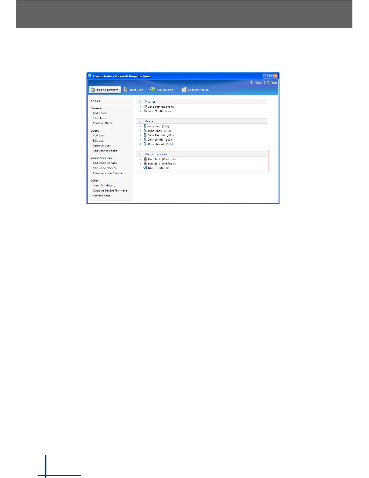 The Phone System screen displays.