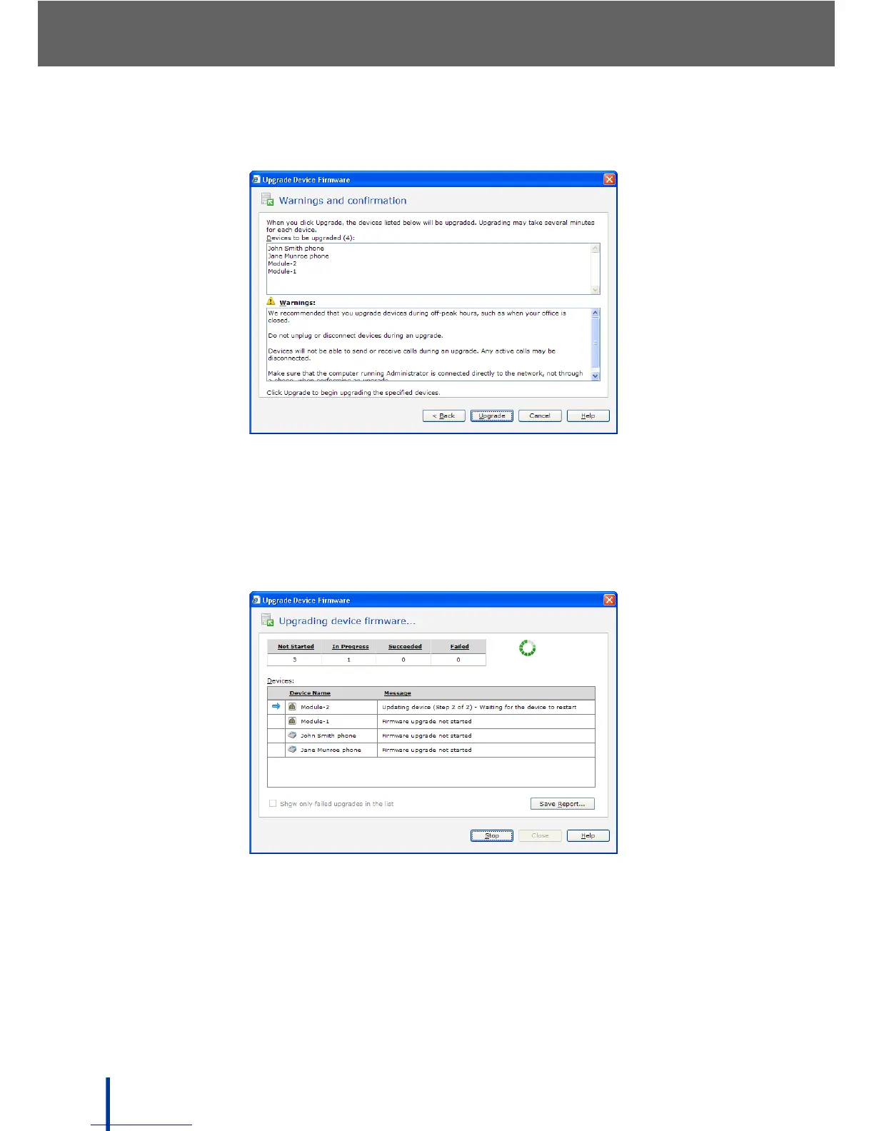 The Upgrading device firmware screen displays.