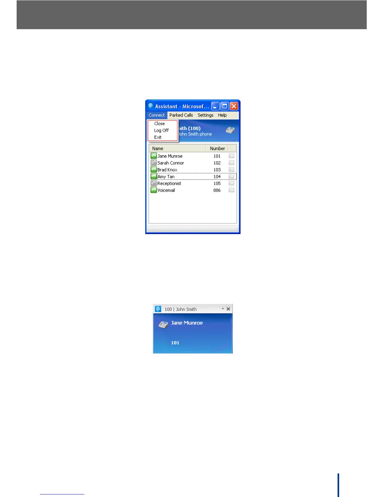 • Exit—logs off of Assistant and exits the program. Assistant does not run in
