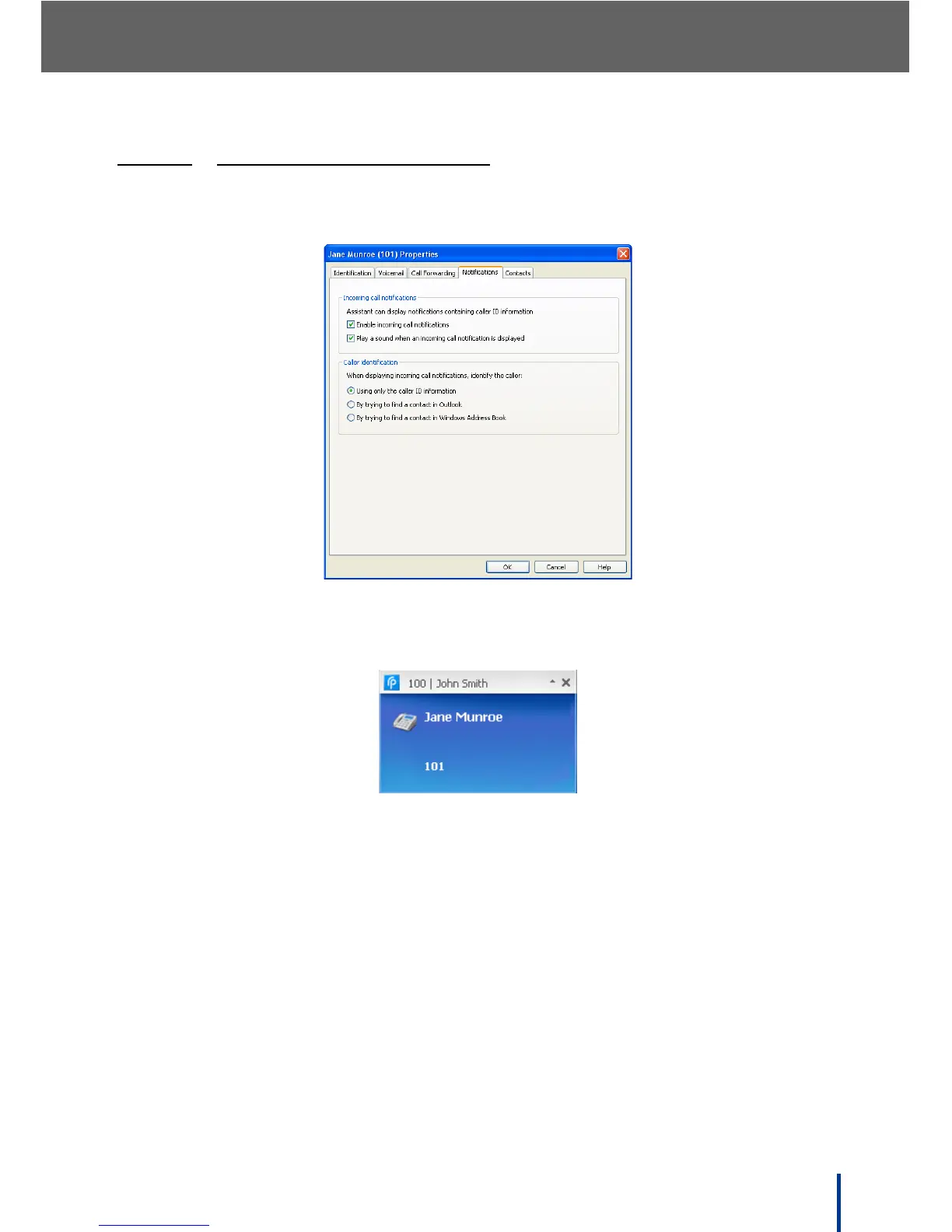 • By default, users are notified of incoming calls by an Assistant pop-up in