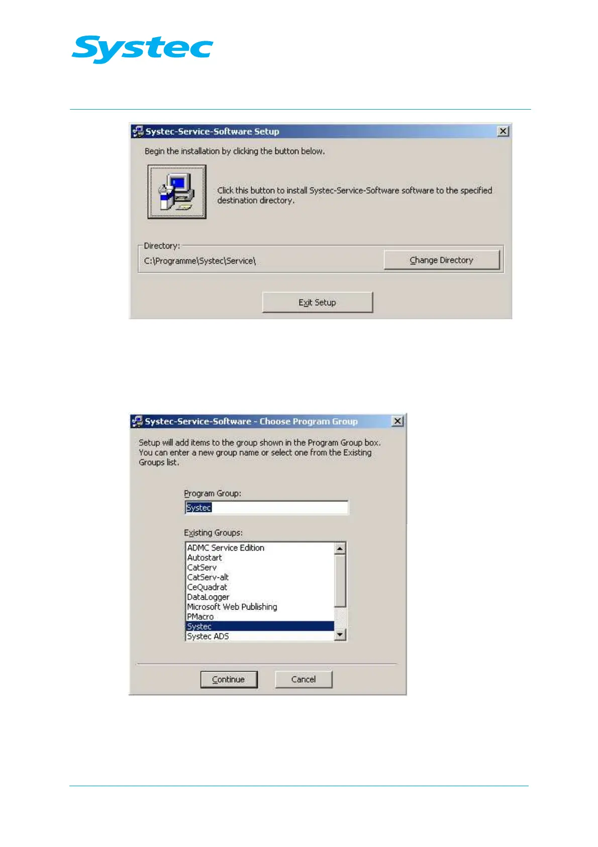 Systec DB-23 - Fig. 2: Installation Wizard: Selecting the Target Folder; Fig. 3: Installation Wizard: Selecting the Program Group in the Start Menu