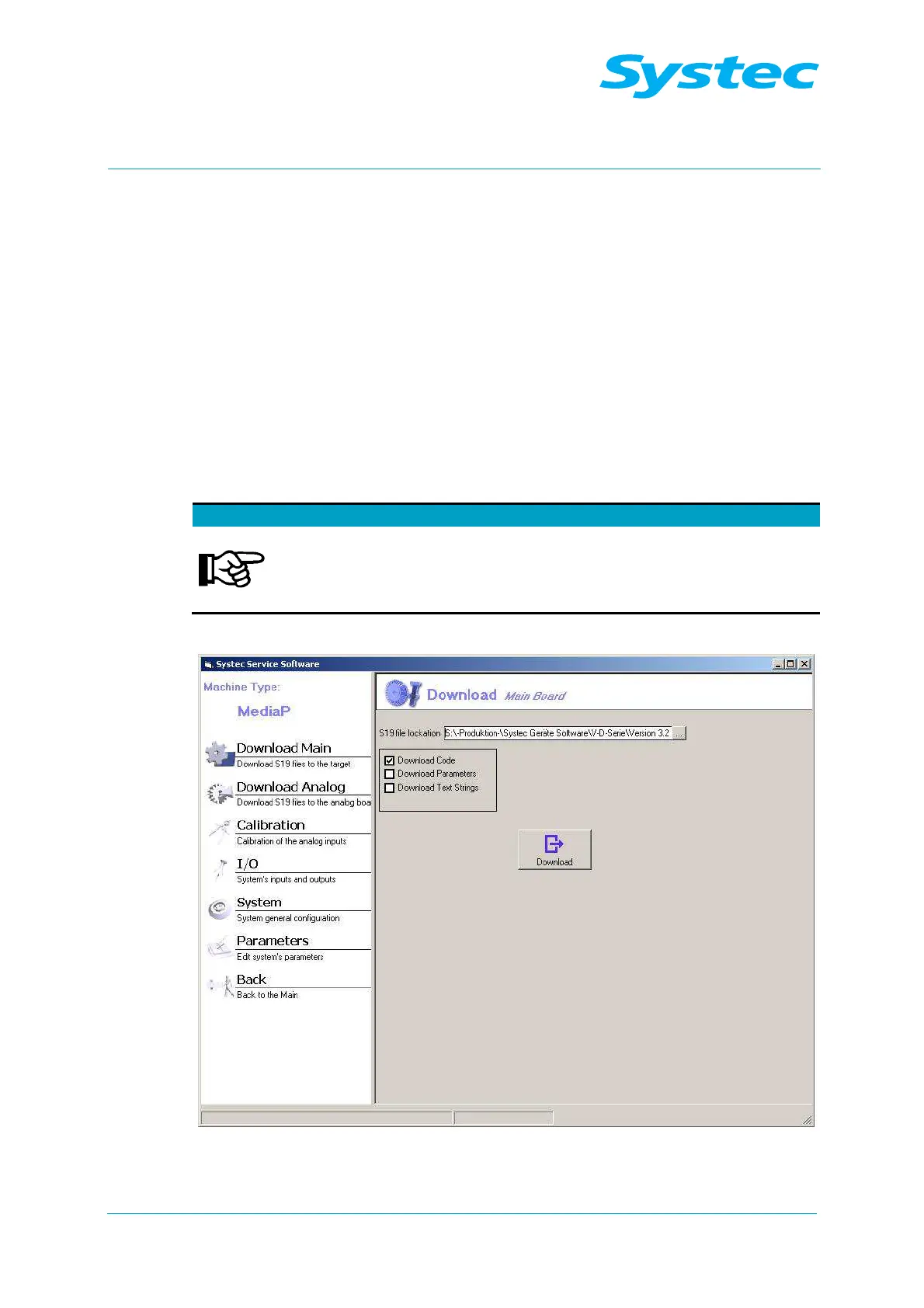 Fig. 11: Systec service software: Download Main