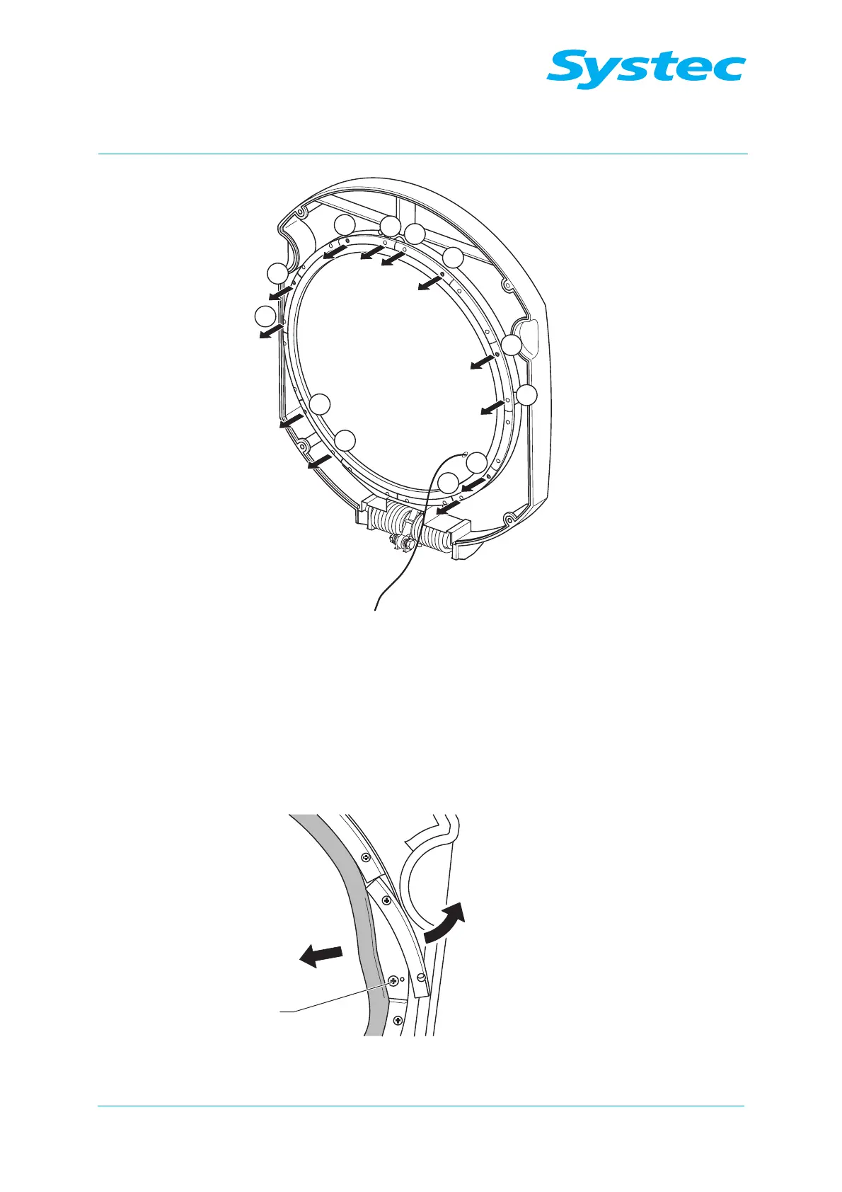 • Remove the 6 fastening screws (1) on the fixing plate, which are