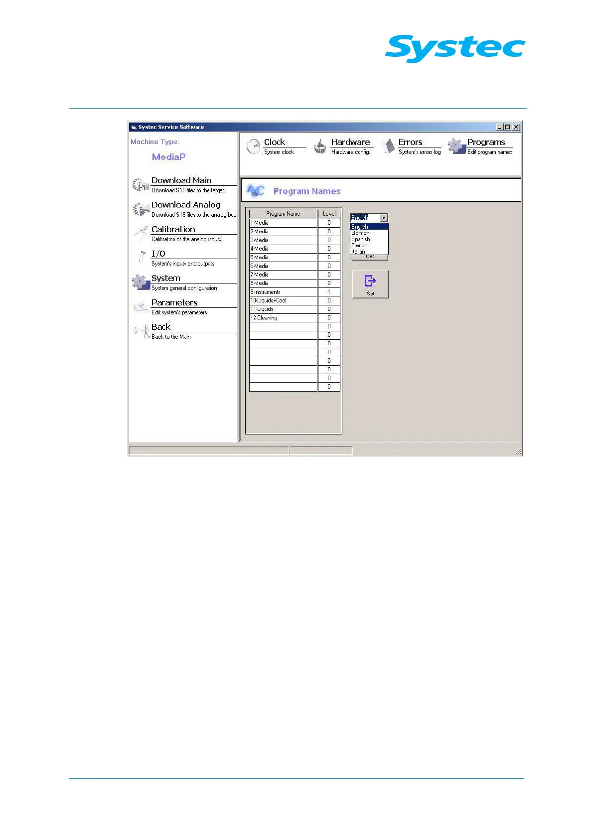 Fig. 20: Systec service software: Programs, language-specific table of program names