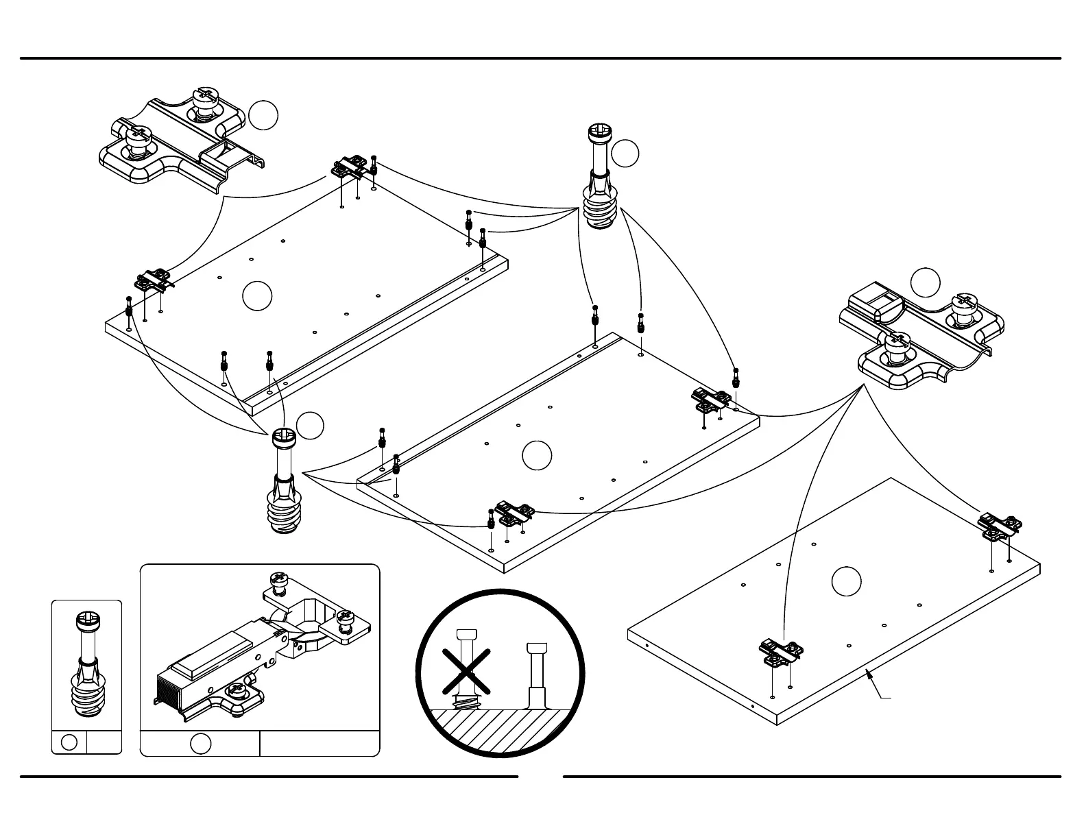 NOTE: CAM BOLT LOCATIONS.