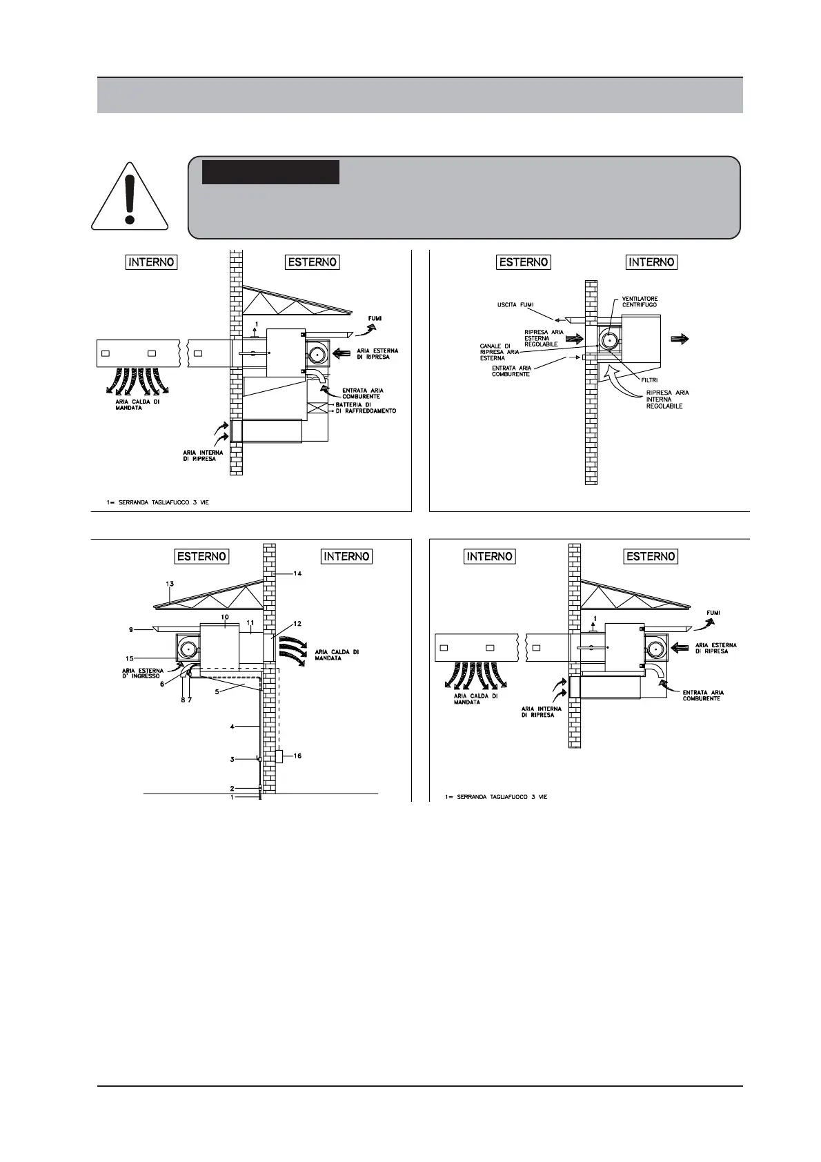 intake and external air regulation shutters, covers, cooling batteries, etc., must be identified by the installing