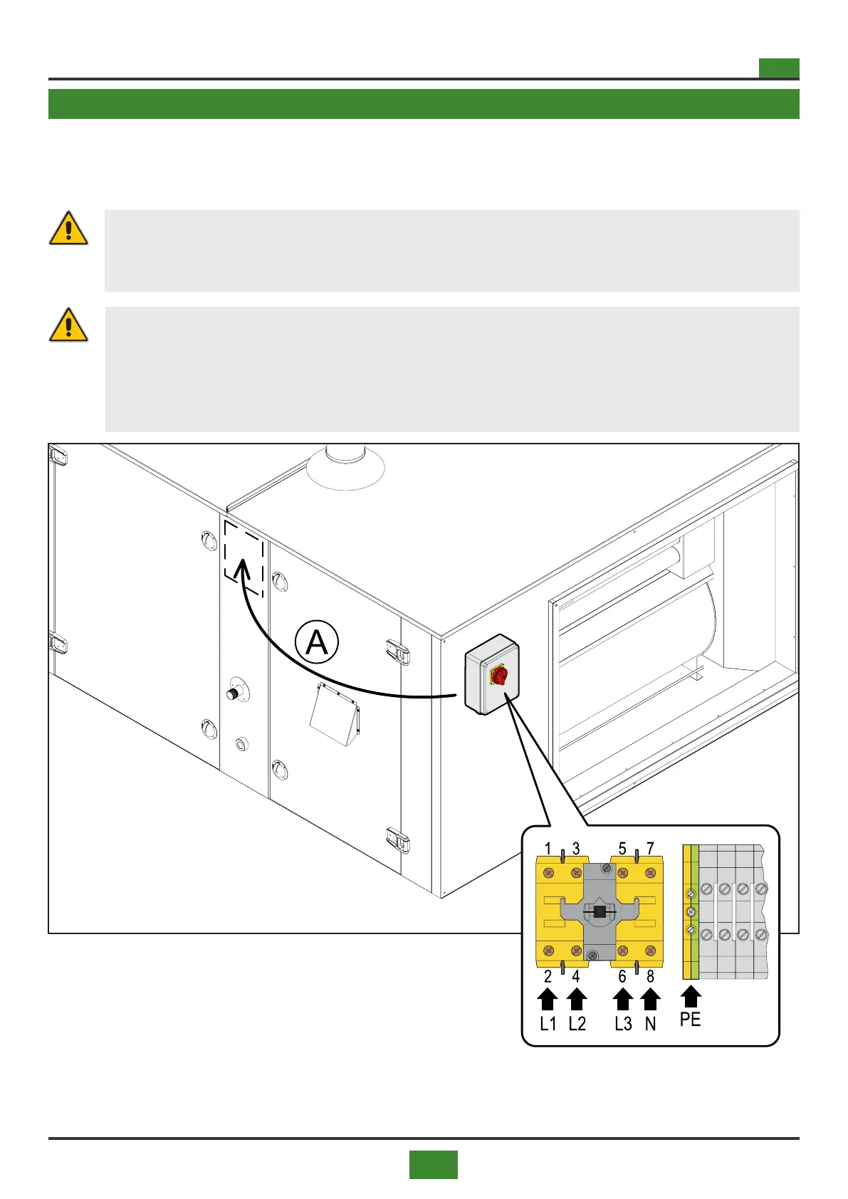 50Hz 400V) to the isolator located on the