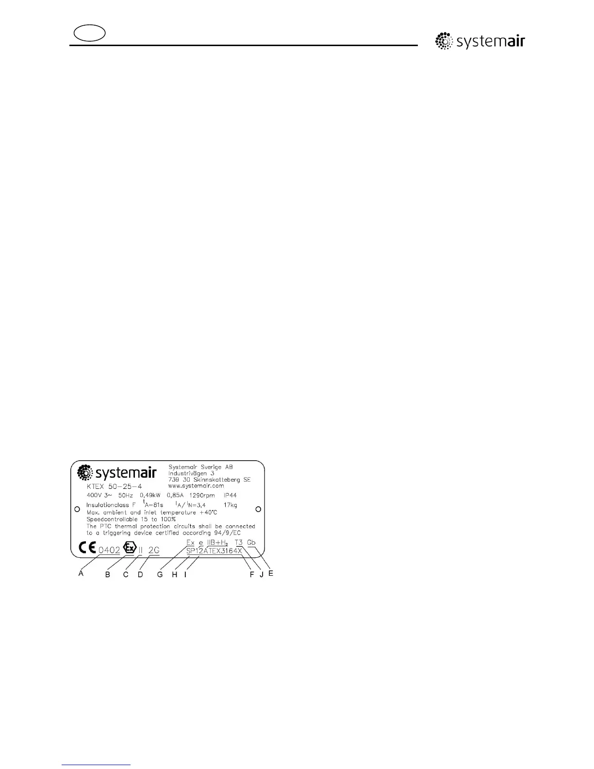 J Temperatuuriklass T3, ventilaatori max pinnatemperatuur on