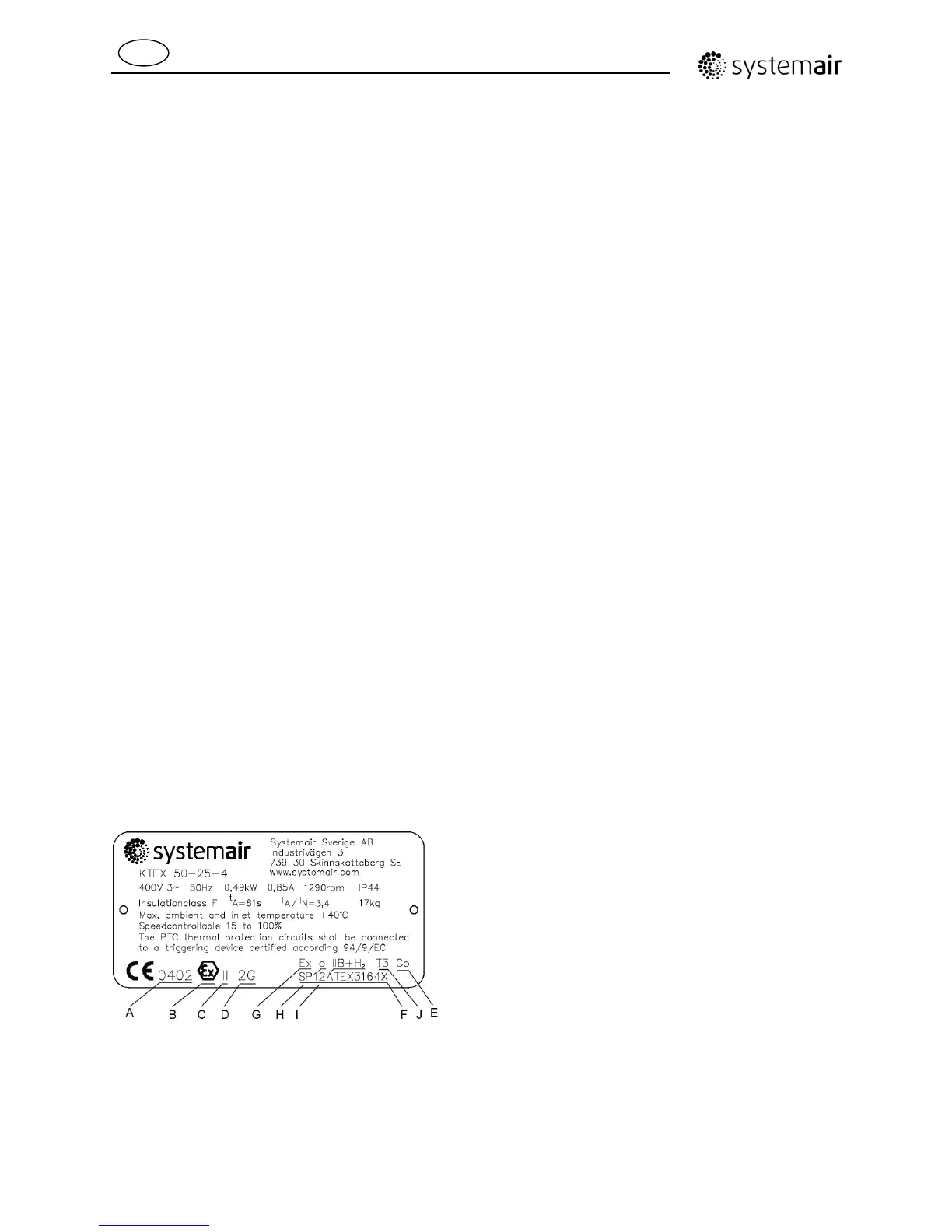 J Temperatūras klase T3, ventilatora maks. virsmas temperatūra ir