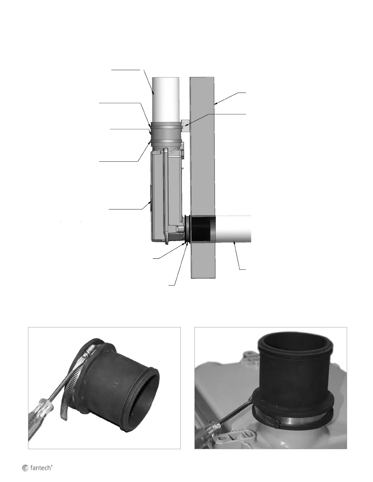 d’aspiration sur un mur extérieur. Le tuyau d’aspiration devrait être installé avec une pente légère pour drainer l’eau hors du ventilateur. Le Rn2SL