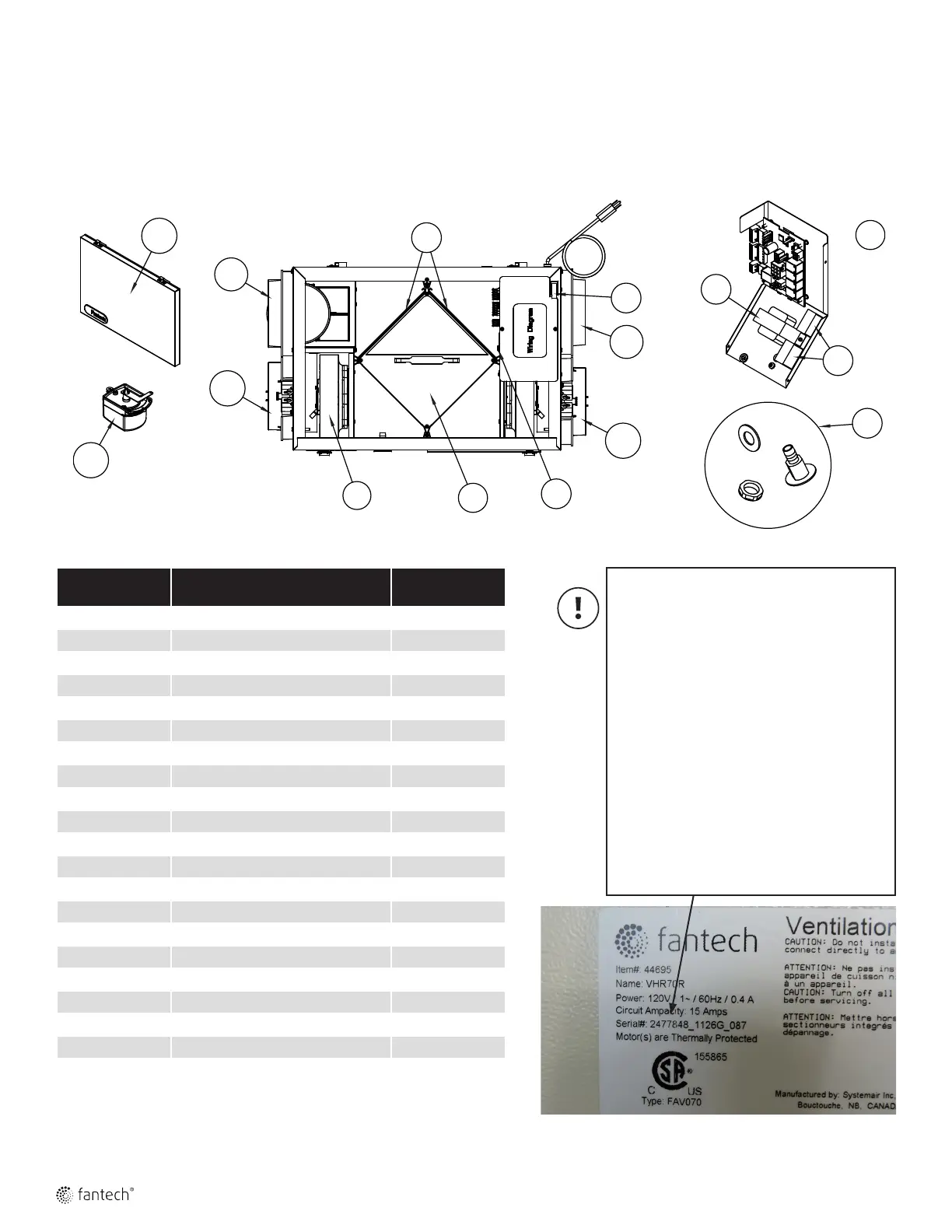 PARTS LIST • LISTE DES COMPOSANTES