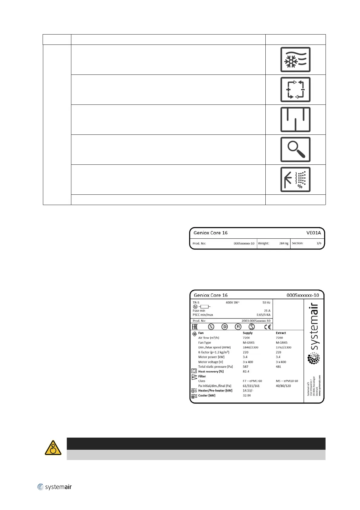 D.1.2 Weight of each section and production number – example for the Geniox Core unit