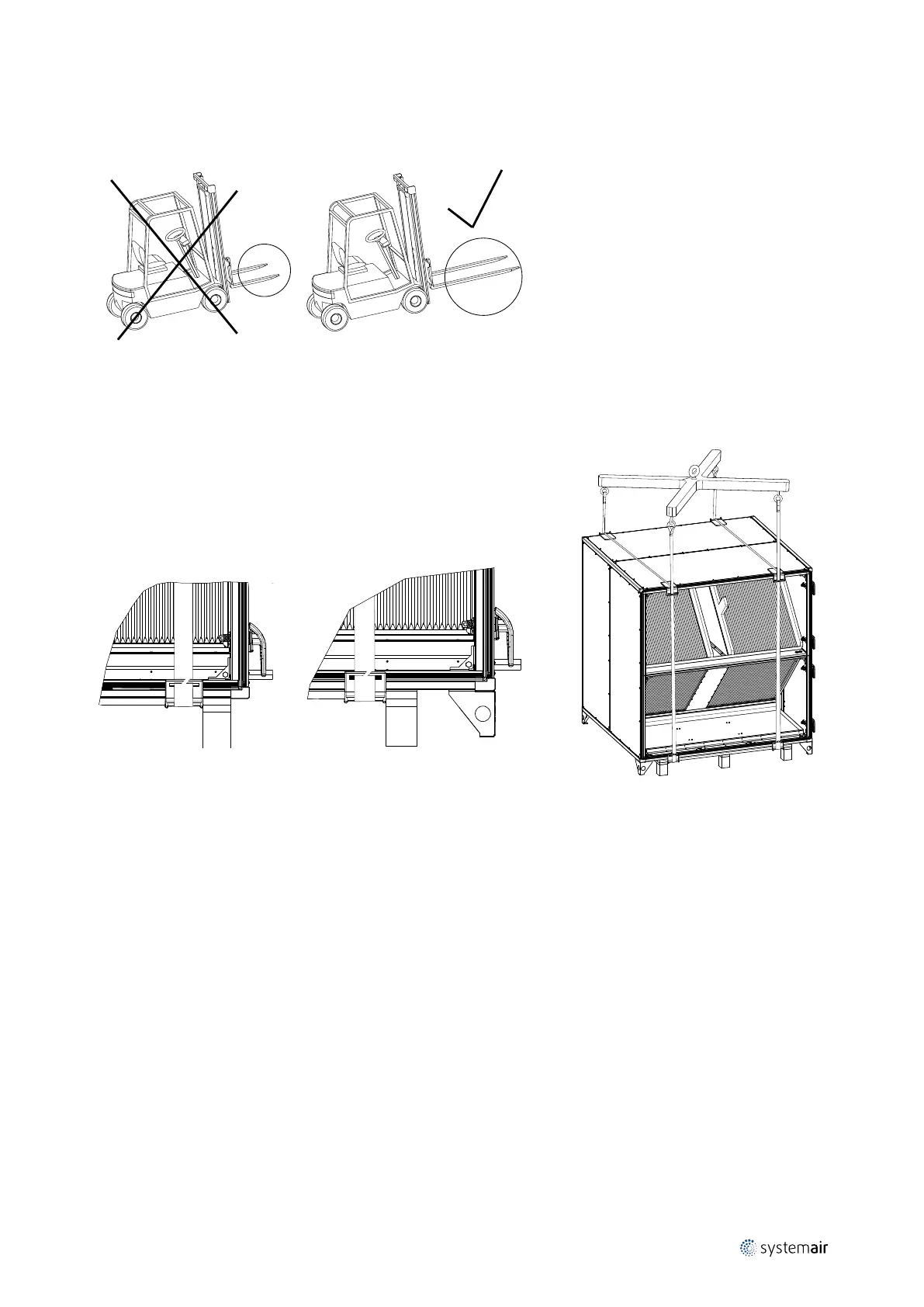 The forks of the truck must be sufficiently long to avoid any damage to the AHU underside.