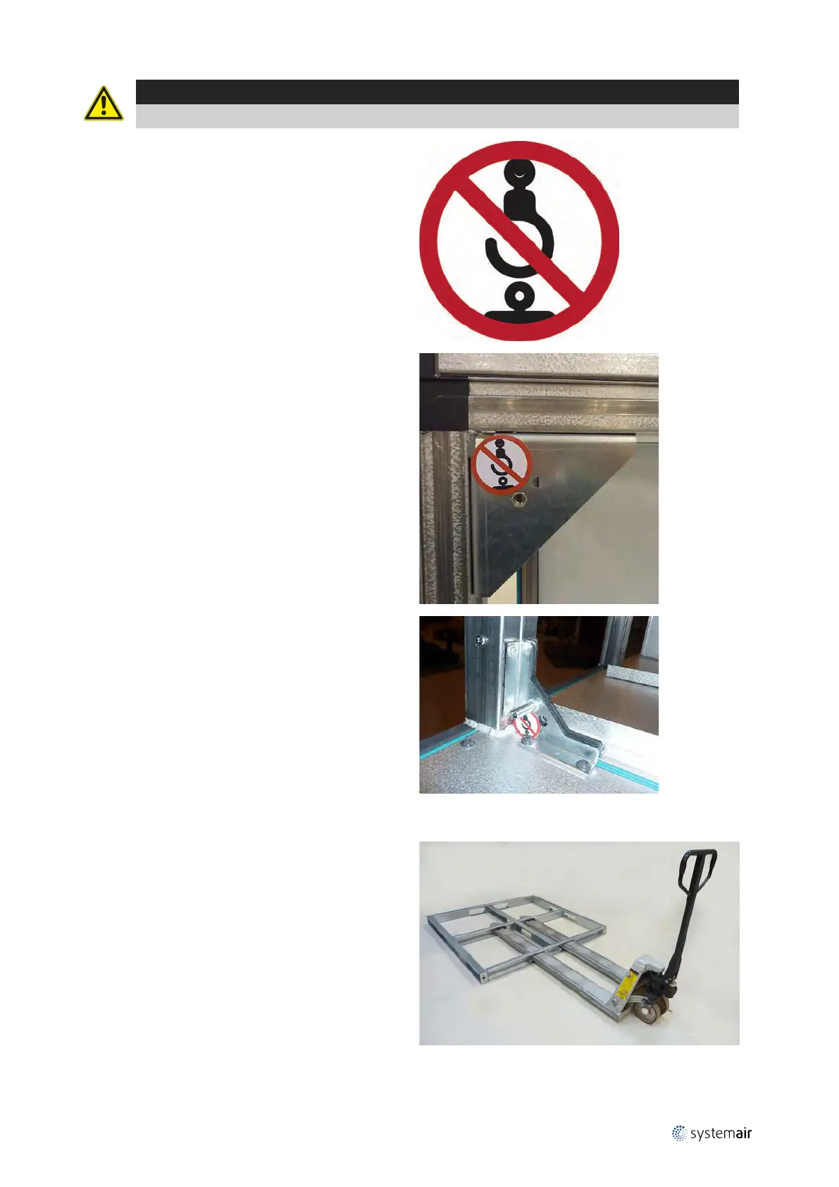 Do not lift a section in the 4 brackets that are marked with the label — lifting prohibited.