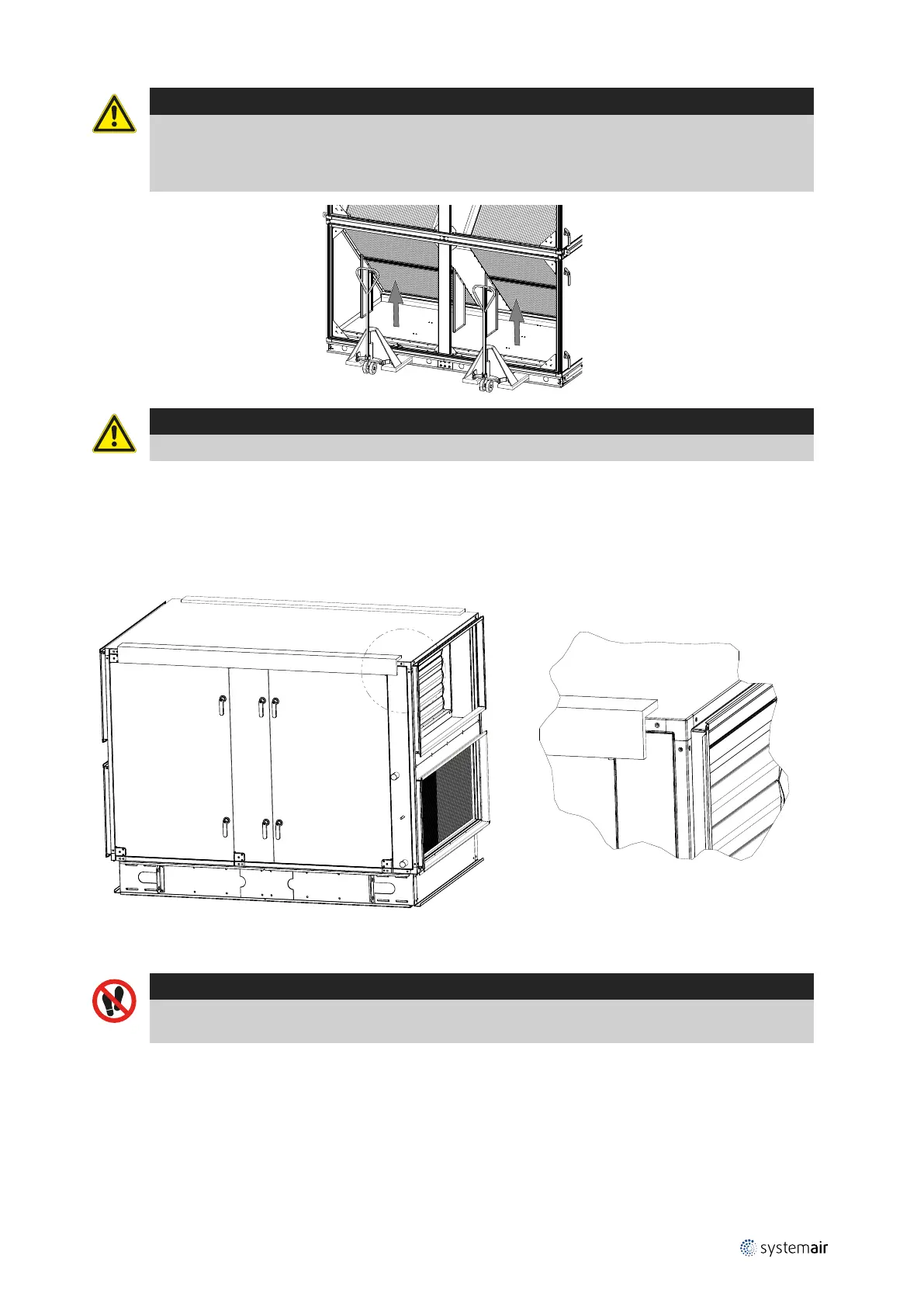 The AHU must be protected from the weather and accidental impact. Plastic packaging must be removed and the unit
